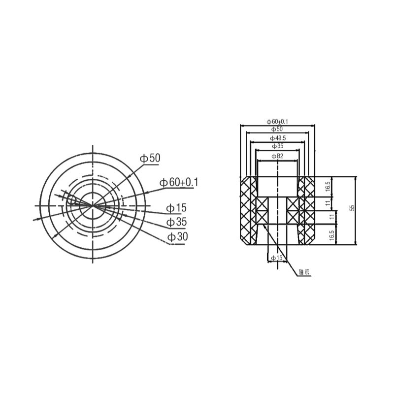 Produkt prítlačného valca má priemer 60 mm a výšku 55 mm. Je vybavený ložiskami 6202. Tento model ložiska má vysokú nosnosť a rýchlosť otáčania a je vhodný pre scenáre aplikácie eskalátorových valčekov. Použitie CPU (vysoko výkonný plastový materiál) môže dlhodobo udržiavať stabilné fyzikálne a chemické vlastnosti a predĺžiť životnosť valcov; valčeky využívajú kvalitné ložiská a materiály, ktoré majú vysokú nosnosť a dokážu vyhovieť potrebám rôzneho zaťaženia eskalátora. prevádzkové požiadavky za podmienok.