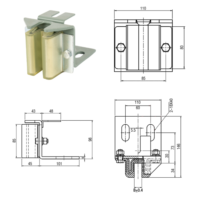 Vodiace čeľuste protizávažia Mitsubishi sú určené pre výťahy s prevádzkovou rýchlosťou nepresahujúcou 1,75 m/s, zaisťujú ich stabilitu v oblasti stredne a nízkorýchlostných výťahov. Vodiaca pätka môže zodpovedať dvom rôznym špecifikáciám vodiacich koľajníc, 10 mm a 16,4 mm, a je odolná voči opotrebovaniu a korózii. Technológia redukcie vibrácií vodiacej pätky môže výrazne znížiť hluk a vibrácie, čím sa zlepší pohodlie cestujúcich; Konštrukčný dizajn je primeraný, proces inštalácie je jednoduchý a rýchly a údržba je relatívne jednoduchá.